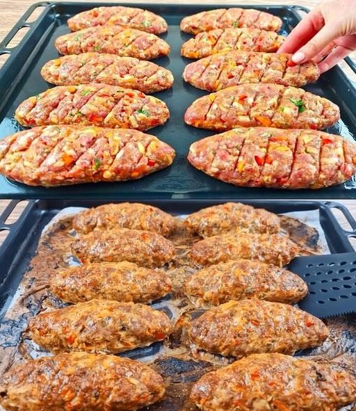 2.Nun die Zwiebel klein hacken und mit dem Hackfleisch, den Kräutern und dem Paniermehl zu der Flüssigkeit geben. Dann alles gut durchkneten bis sich alles miteinander vermischt hat und anschließend mit Salz und Pfeffer würzen.