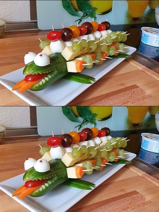 • Für besondere Anlässe kann das Krokodil thematisch dekoriert werden, z. B. mit Gemüseblumen oder essbaren Blättern.