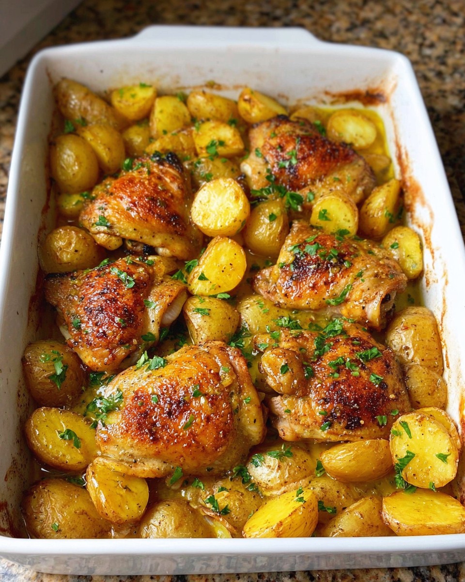 Ofenhähnchen mit Gewürzkartoffeln & Kräutern